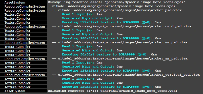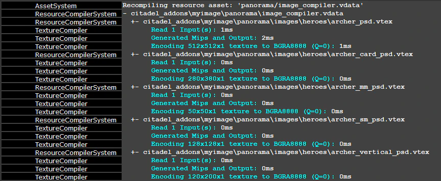 Create a new file named image_compiler.vdata in the panorama or scripts folder of your addon, copy the template below and paste it into the file. Modify the image_list section to reference your own images ({images} is the panorama/images folder).
