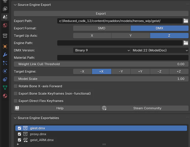 or DMX (BlenderSource2Tools