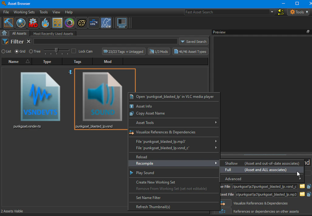 Then, navigate into the direction of the sound and decompile it into your addon. The result filepath and filename SHOULD match the location where the original file was.