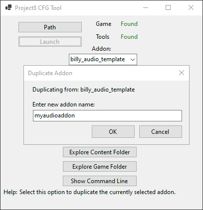 Create a New Addon: Give your addon a name and press the “Create Addon” button. Only use lowercase or bad things will happen. This will automatically create two folders for your project: